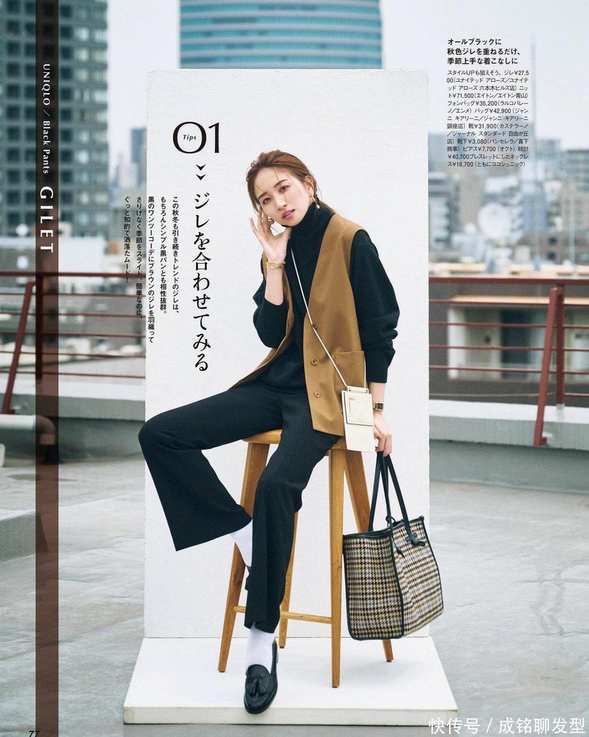 这款大地色的马甲,它同样是对大龄女性很友好的一类服装,尤其是那些有了足够气质的成熟女性,她们更加有能力把这类服装驾驭出彩。在里面可以组合最为普通的黑色高领衫,运用人人都能掌控的单品,完成基础穿搭。