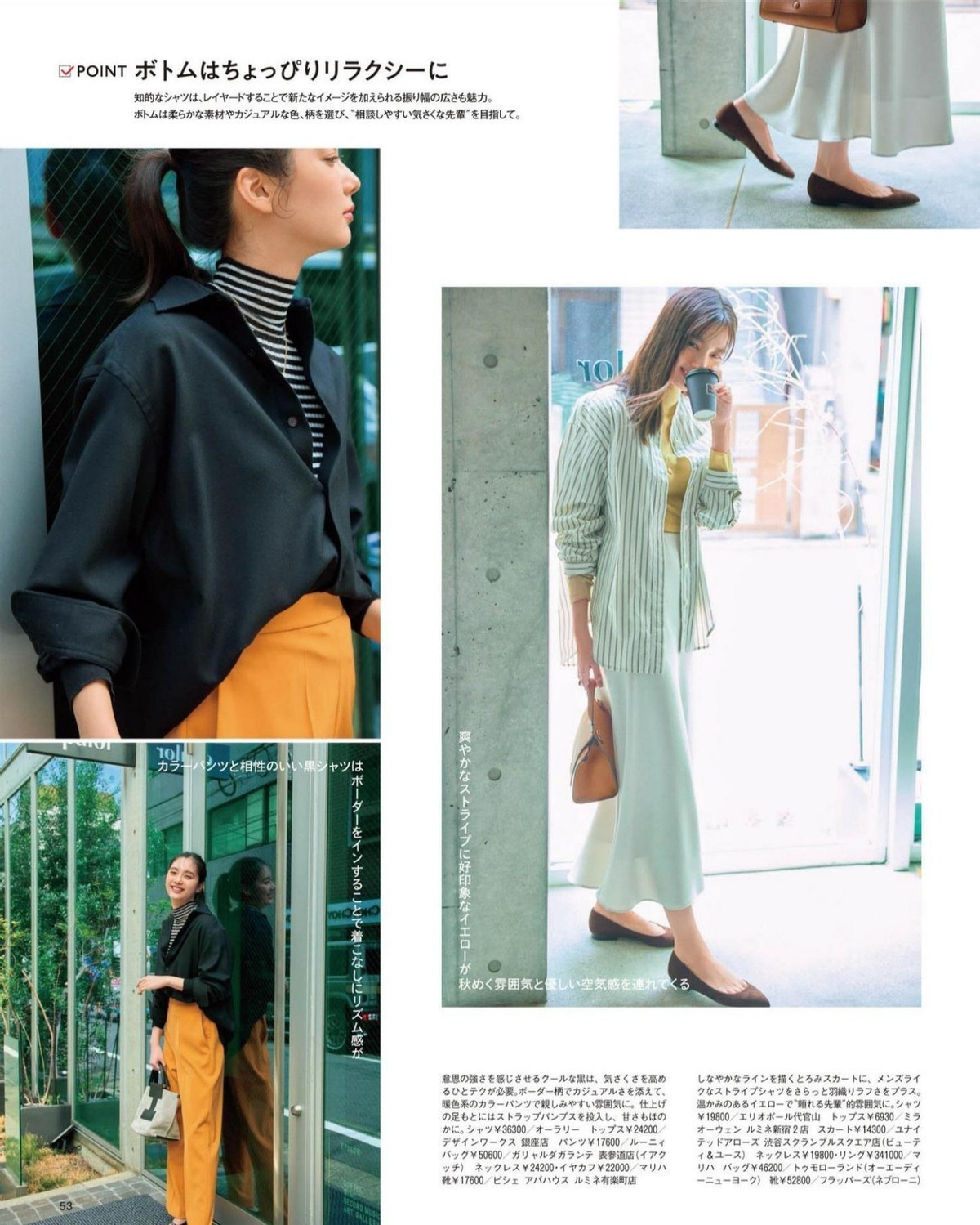 相对来说,衬衫是容易被大家忽视的一大单品,这是因为很多人只是将它当做内搭来看待,却忽视了它的其余作用。可以运用一件米白色的衬衫与同色高领衫结合,温柔中又透露出了几分随性的气息。